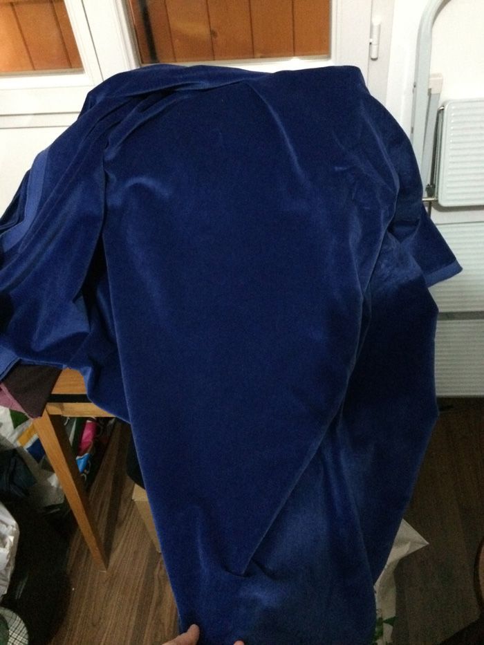 2m50 de tissus : 15 euros. Par chance j'ai rapidement vu comment le travailler pour la cape de mon fils de sorte à ce qu'il m'en reste pour moi...